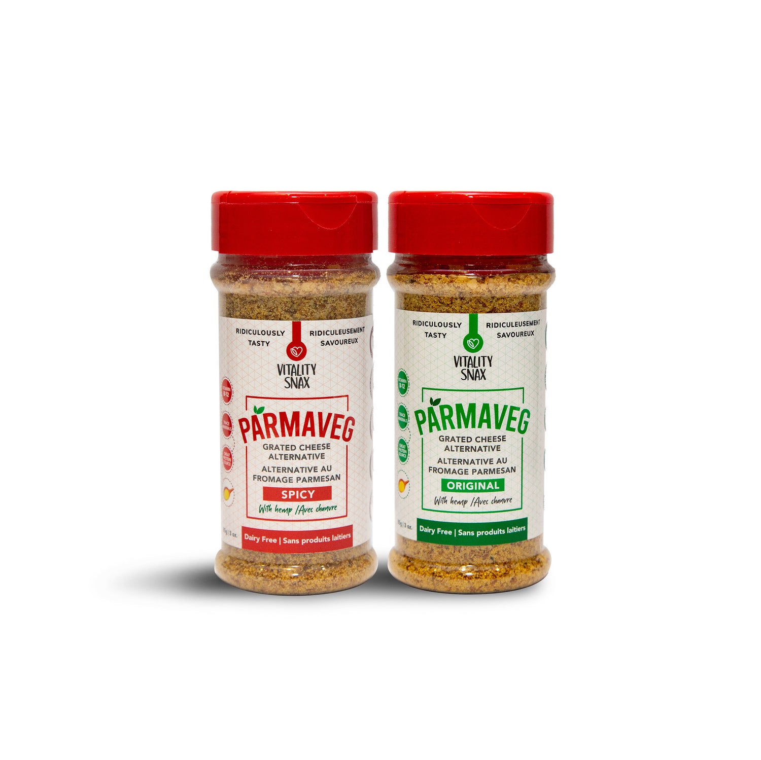 Enhance any dish with our guilt-free ParmaVeg Grated Cheese alternative, made from hemp and dairy-free ingredients. Available in original and spicy for a tasty, nutrient-packed cheesy boost.